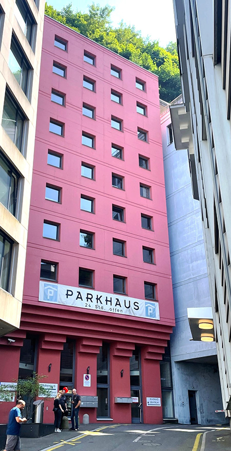 Wer weiss denn, wo das schönst-farbige Parkhaus der Stadt steht?