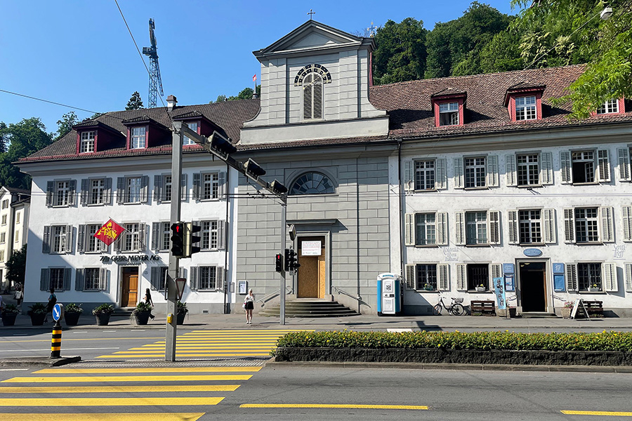 Die Senti-Kirche daneben, einst Teil des Siechenhauses am Rand der Stadt, ist bis November wegen Innenrenovation geschlossen. Die Türe ist nicht verriegelt, und der Flaneur erhascht einen Blick in den ausgeräumten und gänzlich eingerüsteten Innenraum. «Die Gottesdienste finden in anderen Kirchen statt», heisst es an der Kirchentüre. Das ist interessant, wird doch die Sentikirche als «Römisch-katholische Kaplanei St. Jakob» von der konservativen Gruppierung «Rosa Mystica» geführt. Diese hält ihre Gottesdienste in «vorkonziliarer Form» ab, in lateinischer Tradition also. Auf der Website ist auch zu erfahren, dass während der Renovationszeit eine Beichtgelegenheit im rechten Seitenschiff der Franziskanerkirche bestehe. Ob in Deutsch oder auf Latein ist nicht vermerkt.