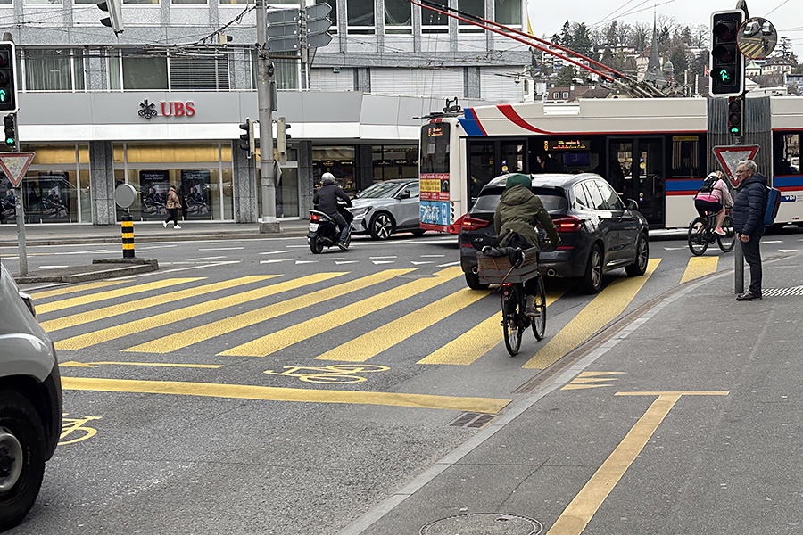 Die Stadt Luzern will die Sicherheit für Velofahrende und Fussgänger*innen verbessern. Wie fühlt sich das aus Sicht einer Velofahrerin an? Hedy Bühlmann hat sich auf den Weg durch die Stadt gemacht.